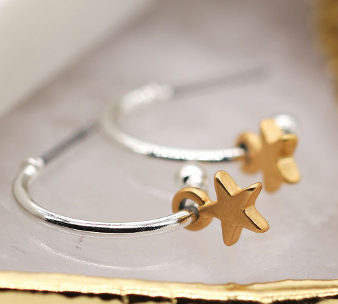 SP HOOP EARRINGS WITH TINY MATT GOLD STARS